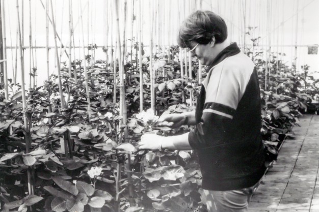 "In 1982 heeft Hettema doelbewust gekozen voor een organisatie waarbij wij als onderneming meer een brugfunctie vervullen tussen de Landbouwuniversiteit en de instituten in Wageningen en onze particuliere kwekers", licht ir. Van Loon toe. "Op het ogenblik werken we nauw samen met 75 kwekers die elk gemiddeld zo'n duizend kloontjes per jaar onder hun hoede hebben. Wij hebben de commerciële kant van het kweken, maar het actieve verdelingswerk wordt aan deze particulieren overgelaten. Wij van onze kant houden ons meer bezig met oriëntatie op biotechnologische ontwikkelingen, het creëren van genetische variaties, wetenschappelijke arbeid waartoe de doorsnee kleine samenwerking met hobbykwekers werkt in de praktijk tot ieders tevredenheid en heeft al tot tal van prachtige resultaten op het terrein van nieuwe rassen geleid."