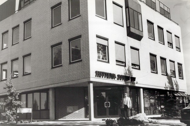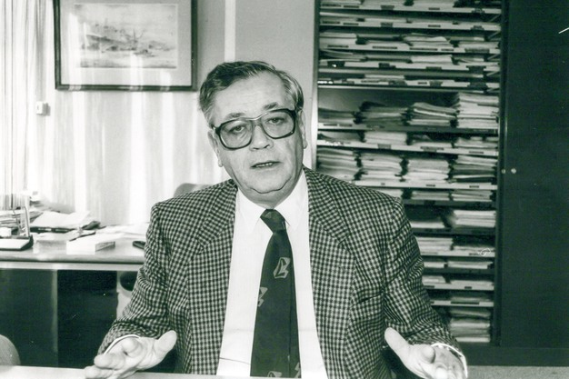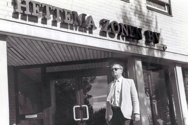 De heer ir. J.P. van Loon voor het hoofdkantoor van Hettema Zonen in Emmeloord