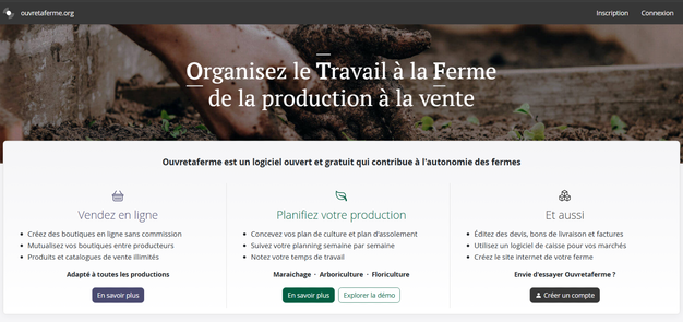 In 2019 lanceerde hij het platform ouvretaferme.org: een gratis en open source softwarepakket speciaal ontwikkeld voor biologische tuinders. Het systeem helpt bij de planning van het dagelijkse werk op het veld: wat is er al gedaan, wat moet nog gebeuren, hoe zit het met de oogst, de verkoop, de voorraad, en wat is eigenlijk de kostprijs per gewas?
