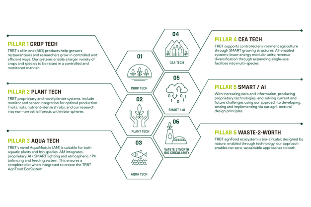 Het model van TRBT ontstond als antwoord op een uitdaging van de Europese Ruimtevaartorganisatie (ESA): voedsel telen in extreme buitenaardse omgevingen. Sindsdien past het bedrijf dezelfde aanpak toe op de aarde, met name in post-industriële steden en klimaatgestreste gemeenschappen.