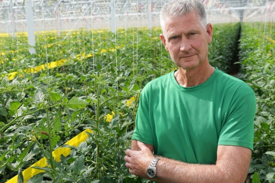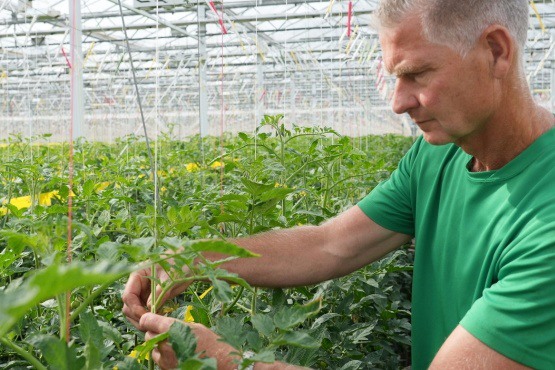 Bij Solyco in Berkel en Rodenrijs worden op drie locaties in totaal 17 hectare tomaten geteeld. Bedrijfsleider Jack Schie is verantwoordelijk voor de belichte teelt van het ras Macxize, een grove trostomaat met vijf vruchten per tros. "De eerste vijftien trossen worden gezet vanaf oktober. Juist in die periode is trosondersteuning cruciaal om knikken te voorkomen en de plant in balans te houden," vertelt Jack.