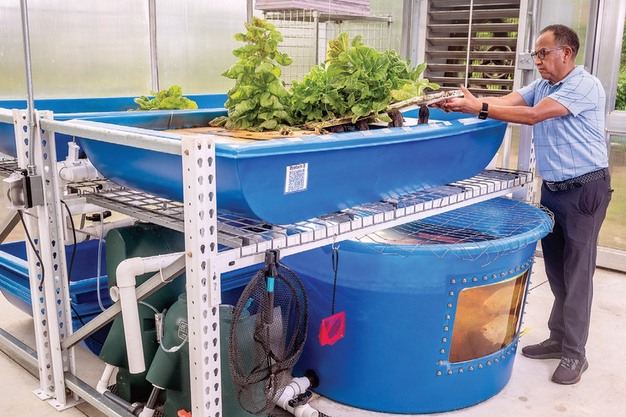 Het aquaponics-lab van UMD ondersteunt experimenten in nutriëntenkringloop, voedselveiligheid en nieuwe benaderingen zoals nanobubbels, door zonne-energie aangedreven systemen en duurzame visvoeropties zoals larven van de zwarte soldatenvlieg.