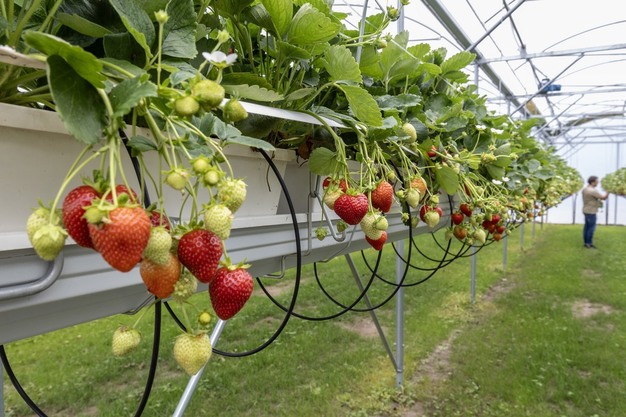 Tholen - Bij Proefcentrum Hoogstraten is een nieuwe foliekas voor aardbeien verschenen. Bij de ontwikkeling van deze AirVent-foliekas is extra aandacht besteed aan de toenemende robotisering in de sector, aan het telen in warme en vochtige omstandigheden, en aan de meest efficiënte inzet van arbeid.