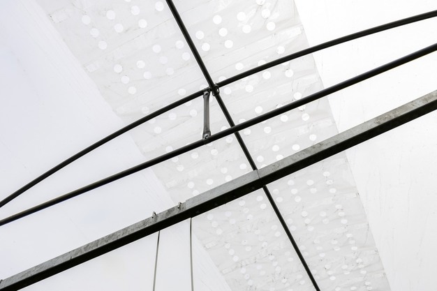 Er zitten slimme details in het ontwerp van de nieuwe foliekas. Zo is er een dakgootventilatie van 110 cm over de volledige lengte in het ontwerp opgenomen en wordt gebruikgemaakt van een nieuw ontwikkeld en gepatenteerd VENTO-folie. Dit tunnelfolie bestaat in de nok uit een geperforeerde laag met daaroverheen een ongeperforeerd folie. Hierdoor kunnen warme lucht en overtollig vocht ontsnappen en ontstaat er vanaf een graad of 18 een natuurlijke ventilatie. "De kas ventileert dankzij dit folie uit zichzelf, en dat merk je direct als je erin staat", vertelt Robin.