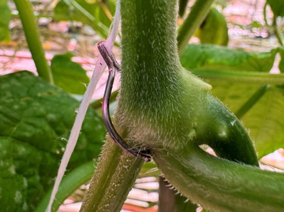 Een andere belangrijke bron van plastic in tuinbouwafval zijn de tomatenhaken. Hiervoor ontwikkelde Hortiware enkele jaren geleden de CROP CURV, een metalen haak. "Gecombineerd met biologisch afbreekbaar touw en metalen ondersteuningen wordt gewasafval volledig plasticvrij en volledig organisch," zegt Dirk-Jan. "Het verhaal begon met de metalen ringen en wordt compleet met de CROP CURV."