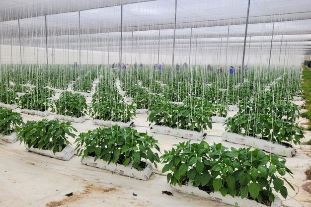 In tegenstelling tot gecontroleerde kassen worden de paprika's onder plastic tunnels en netten geteeld, wat gebruikelijk is in de regio. "Dat zorgt ervoor dat de druk van plagen een echt risico is," merkt hij op. "We hebben niet hetzelfde niveau van klimaatbeheersing, dus we moeten voorop blijven met monitoring en respons."