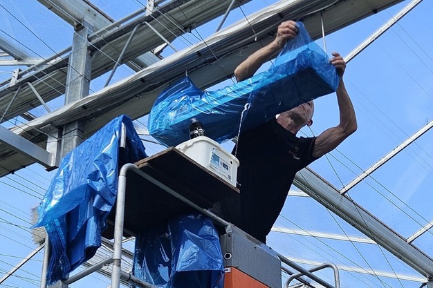 "Tot nu toe gebruikten telers vaak vuilniszakken waar ze in moesten knippen. Dat kost tijd en is onhandig," legt Peter uit. "De LCS LED Cover heeft twee plakranden waardoor je het armatuur in een paar seconden inpakt."