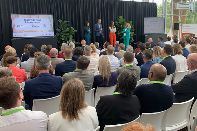 Tijdens het Tuinbouw Congres in Venlo is het Groenten en Fruit Cyberabonnement officieel gelanceerd. Bij de lancering waren Robert Bakker, Specialist Data & Digitalisering bij GroentenFruitHuis, Adri Bom-Lemstra, voorzitter van Greenports Nederland en Anne Visser, Programmamanager van het Cyberweerbaarheidscentrum Greenport aanwezig.