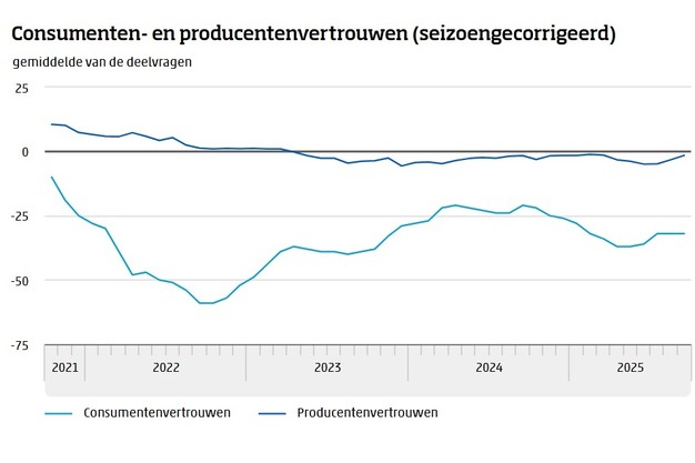 De productie van de Nederlandse industrie daalde in juli met 1,1 procent ten opzichte van dezelfde maand in 2024. Het aantal faillissementen nam in augustus af met 21 bedrijven (-7 procent). De prijzen van bestaande koopwoningen stegen in dezelfde maand met 7,9 procent ten opzichte van een jaar eerder.