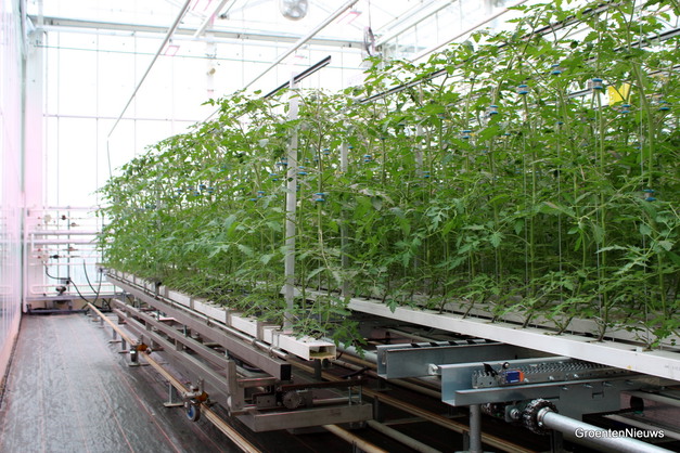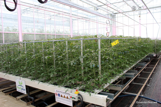 De tomatenplanten in dit speciale concept, waaraan Ridder al enkele jaren werkt en waarbij diverse partners zijn aangesloten, worden geteeld op mobiele goten van Hortiplan. Eerder werden goten gebruikt die waren ingericht voor de slateelt.