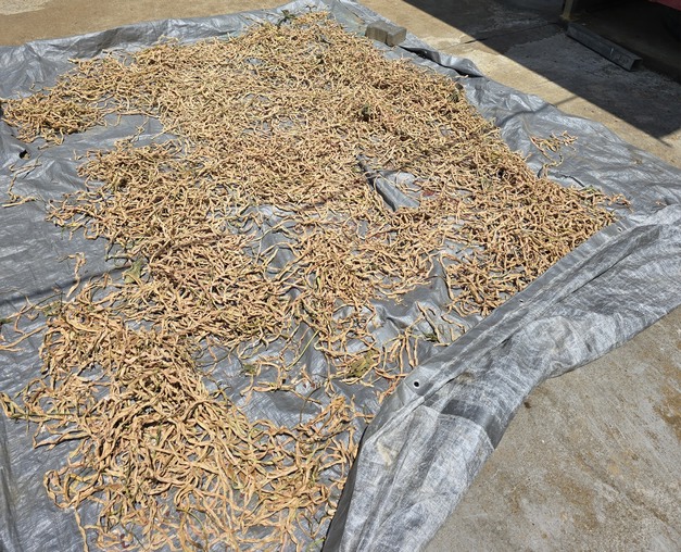 Kouseband ligt te drogen. Uit de gedroogde groente worden de zaden gehaald voor de volgende oogst.