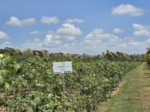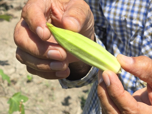 Een van de topproducten in de export is okra. "Die is erg in trek in Nederland, Duitsland en het VK", aldus Bhies. "Wist je dat de bruine korst op sommige fastfoodburgers okrapoeder bevat? We telen die groente op 20 hectare. Dat is best veel. Om 10 hectare te planten zijn we met 8 mensen een hele week bezig. Daarom zoeken we nu naar manieren om dat machinaal te doen." De zaden komen uit Afrika via Nederland, de oogst start al na twee maanden en loopt door tot negen maanden na aanplant.