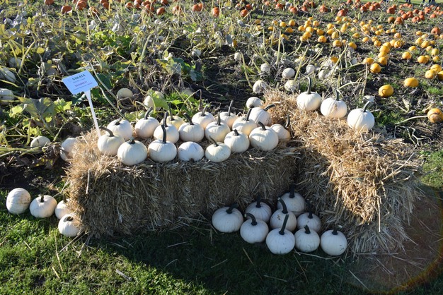 © Marjet Lubbers-Bruijnse | GroentenNieuws.nl Deze witte pompoen (SQ124008) is een opvallend nieuw ras dat kleine uniforme vruchten geeft. Er zijn meeldauw resistenties aanwezig in deze plant.