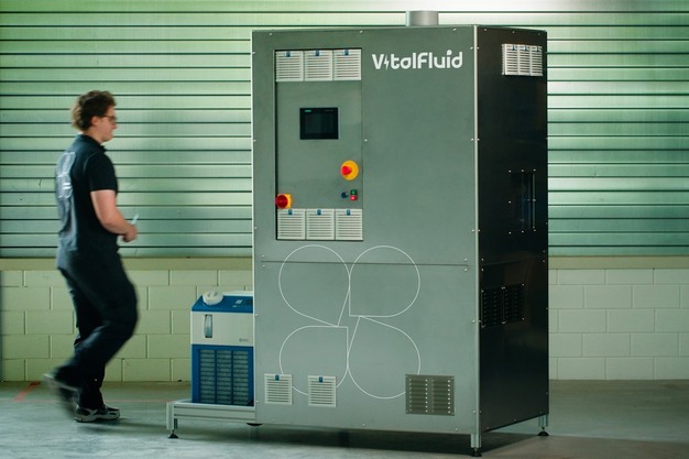 VitalFluid maakt in de zelf ontwikkelde machines met hun 'bliksemproces' vrije radicalen. "We hebben het juiste recept gevonden om de juiste samenstelling uit het proces te laten komen om tot krachtige desinfectie te komen, zonder dat gewasschade optreedt." Mark is er razend enthousiast over. "Wij zijn hard op weg om de wereld te verbeteren met een alternatief voor schadelijke chemicaliën."