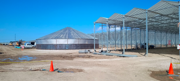 Het kasdek is inmiddels voor 95% glasdicht, en ook de installatie van het verwarmingssysteem is al voor ongeveer 75% gereed. Daarnaast is de bouw van de warmteopslagtank van start gegaan.