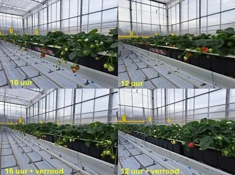 Als bijkomstigheid wordt er met de ingezette behandelingen gekeken in hoeverre daglengte een bepalende factor voor dormancy in de belichte doordrager teelt is.