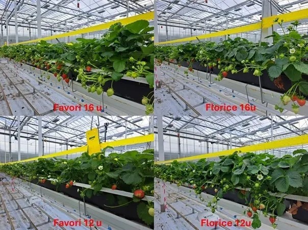 Als resultaat van de verse, daglengte gestuurde opkweek voor onbelichte doordragers in januari, is er verdere verdieping gezocht in het effect van daglengte en plantleeftijd voor sturing in de opkweek. Hiervoor zijn Florice en Favori op 16 uur en 12 uur opgekweekt voor 7,5 en 12 weken. Daarnaast zijn er twee behandelingen toegevoegd waarin planten van de laatste 3 weken van de opkweek naar een kortere of langere daglengte zijn verplaatst. Hiermee werd gekeken of er gestuurd kon worden op bloei inductie en of dit effect in oudere planten sterker is dan in jongere planten.