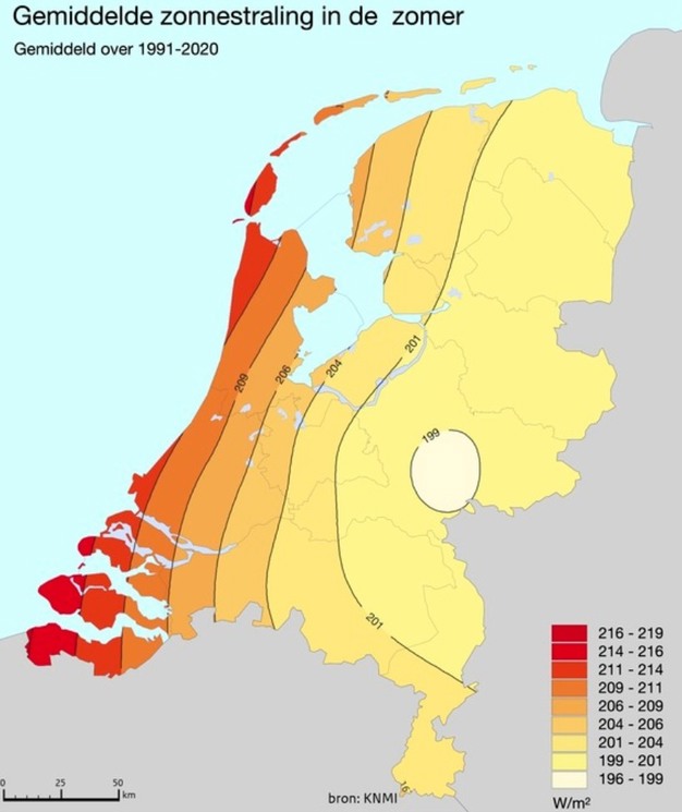 © KNMITe veel zonlicht en vooral een te hoge lichtintensiteit (watts/m²) kan een nadeel zijn, omdat de temperatuur onder de opstanden te snel en te hoog kunnen oplopen. Dit veroorzaakt grote schokken in met name planttemperatuur en RV. Hetgeen allerlei schade kan veroorzaken, zoals verbranding van bladpunten, neusrot in vruchten, afvallen van bloemen en knoppen, en een slechte vruchtzetting.