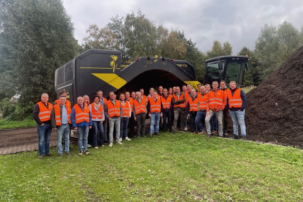 De reis begon bij Olde Bolhaar Eco Service (OBES), waar groenafval en boomschors worden verwerkt tot hoogwaardige compost. Deelnemers zagen van dichtbij hoe deze duurzame grondstoffen steeds vaker hun weg vinden naar professionele substraten. Dankzij recente RHP-certificering en de uitbreiding van de productiecapaciteit is OBES klaar om een nog grotere rol te spelen in het vergroenen van de sector.