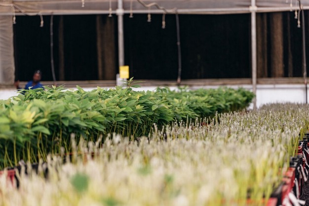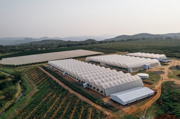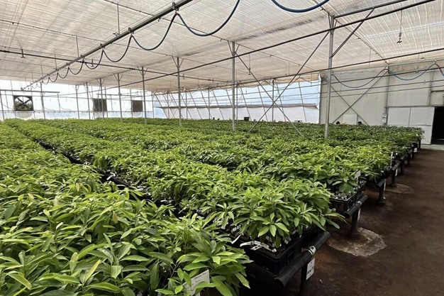 Tijdens de volgende fase worden de jonge planten ondergebracht in met plastic overdekte kassen. Deze structuren zijn speciaal ontworpen om de lichtblootstelling te reguleren, fertigatie toe te passen en een geleidelijke acclimatisatie mogelijk te maken. De kassen zijn uitgerust met nevelsystemen en klimaatgestuurde schermen, die helpen om de temperatuur in de zomer onder de 35°C te houden.