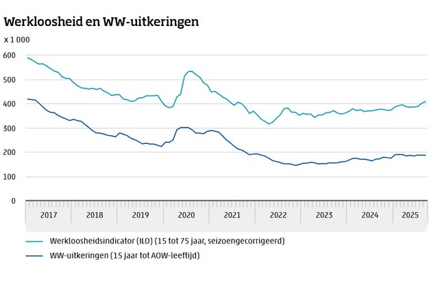 In september 2025 waren er 409 duizend werklozen in Nederland, wat overeenkomt met 4,0 procent van de beroepsbevolking van 15 tot 75 jaar. Dat is het hoogste percentage in vier jaar, meldt het Centraal Bureau voor de Statistiek (CBS). Het aantal werklozen is in de afgelopen drie maanden met gemiddeld 8 duizend per maand gestegen, vooral onder 25-plussers.