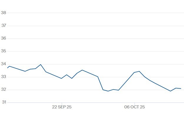 De TTF-gasprijs voor het contract Q1 2026 t/m 15 oktober. Klik hier voor de actuele gascontractprijzen.