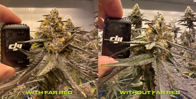 In de vroege proeven gebruikte Faven verrood gedurende de gehele lichtperiode en zag een opbrengstdaling van 11%, met aanzienlijk langere en slungeligere planten. "Dat liet ons de bovengrens zien," zegt Tim. Vervolgens experimenteerden ze met vijf minuten verrood na het uitdoen van de lichten, zonder verrood overdag. Dit resulteerde in snellere rijping, betere kleur en een opbrengststijging van 6%. "De planten leken gelukkiger."