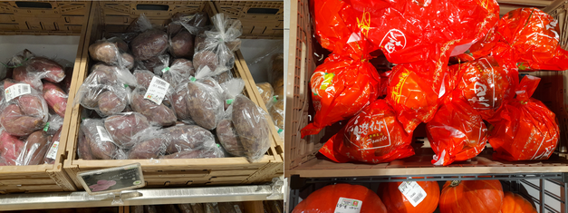© Marjet Lubbers-Bruijnse | GroentenNieuws.nlPaarse zoete aardappel, opvallend verpakte pomelo