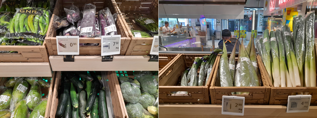 Tijdens het bezoek aan het filiaal in Amsterdam-Noord waren de AGF-schappen nog niet helemaal bijgevuld, maar wat er lag, bood al genoeg verrassingen. Een van de deelnemers vertelde: "Een klant vroeg me laatst om verse zwarte peper. Hij beschreef precies hoe het eruitzag, maar ik wist eerlijk gezegd niet wat hij bedoelde. Tot ik hier in de koeling precies die verse peper zag liggen. Dát bedoelde die klant dus! En hij had het nog goed omschreven ook."