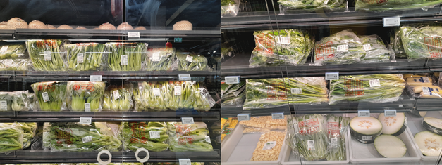 © Marjet Lubbers-Bruijnse | GroentenNieuws.nlPaksoi is een groot product, de koeling ligt vol met verschillende soorten 'choi', linksonder gepelde knoflook en rechts wintermeloen