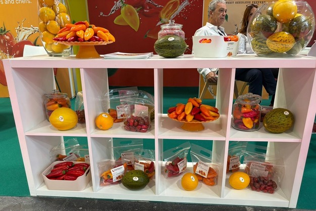 "Ons veredelingsprogramma loopt al voorop. We bieden onze klanten verschillende nieuwe soorten pitloze tweehapspaprika's in alle drie de kleuren: rood, oranje en geel, met resistentie. Dit formaat is ideaal als snack en sluit perfect aan bij de voorkeuren van consumenten."