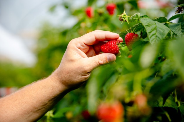 "Ook bij het oogsten is Rubin een verademing ten opzichte van andere frambozenvariëteiten," zegt Hans. "De vrucht is mooi conisch van vorm, waardoor hij makkelijk loslaat zonder te scheuren of sap te verliezen." En dat is ook weer goed voor de houdbaarheid. "Want sap is suikerwater en daarop groeit weer schimmel. Bovendien hoeven plukkers minder ver te lopen, omdat er zóveel frambozen aan de plant hangen. Dat scheelt arbeid en dat is in deze tijden van steeds hogere uurlonen een cruciaal voordeel."
