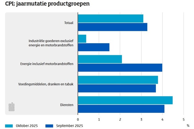 Volgens StatBel ligt de eerste inflatieraming volgens de Europees geharmoniseerde consumptieprijsindex (HICP flash estimate) voor België op 2,5% in oktober. In Nederland worden de reguliere CPI-cijfers voor oktober op 11 november gepubliceerd. Vanaf 2026 verandert het basisjaar van de CPI en HICP van 2015=100 naar 2025=100, met een update van de classificatie van goederen en diensten.