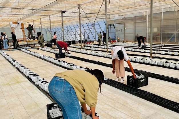 Ongeveer een week na het planten sloten studenten van de Faculteit Tuinbouwwetenschappen zich bij ons aan om Cocogreen pop-up zakken van Glencairns te installeren — een teeltsysteem dat is ontworpen voor optimale wortelgezondheid door efficiënte bewatering en beluchting. De samenwerking met Delphy, dat de dagelijkse productieactiviteiten aanstuurt, verenigt praktische expertise en academisch onderzoek op een manier die direct aansluit bij de behoeften van commerciële telers.