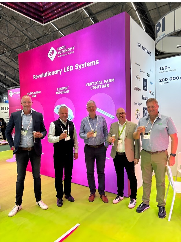 GreenTech 2025, van links naar rechts: Keith Thomas – Commercieel Directeur, Food Autonomy Lighting, Zoltán Sejpes – CEO, Food Autonomy Lighting, Phil Pearson – Groepsontwikkelingsdirecteur, APS Produce, Malcolm Yare – Commercieel Directeur, TCE, en Tim Coats – Algemeen Directeur, TCE