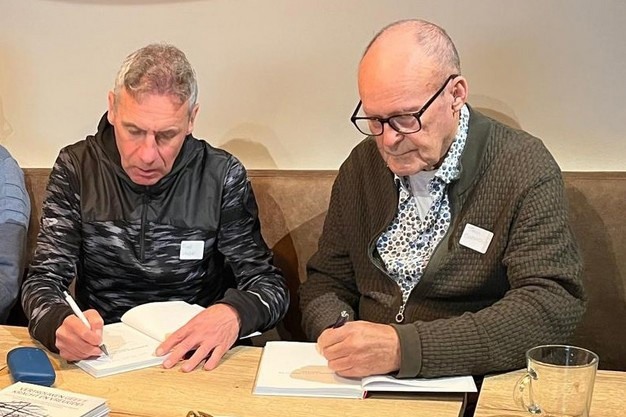 Fred Louter en Teun Boekestijn bij een eerdere signeersessie bij SV.CO in De Lier. Vrijdag 21 november is het duo te gast bij Jumbo Foodmarkt Koornneef in Naaldwijk.