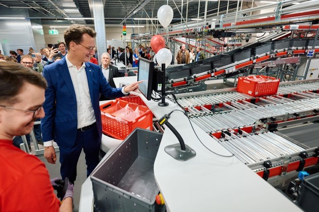 © Picnic Minister-president van Nordrhein-Westfalen Henrik Wüst opende in juni het gerobotiseerde distributiecentrum in Oberhausen.