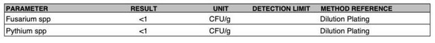 De teler deelt zijn laatste wateranalyserapport van A&L Laboratories om dat in cijfers uit te drukken. "DNA-sequencingtests van dezelfde watermonsters toonden hoge niveaus van Fusarium en Pythium aan, dus weten we daarom voor 100% dat deze transmitters zeer effectief zijn in het elimineren van alle pathogenen in ons water." (zie schema onder)