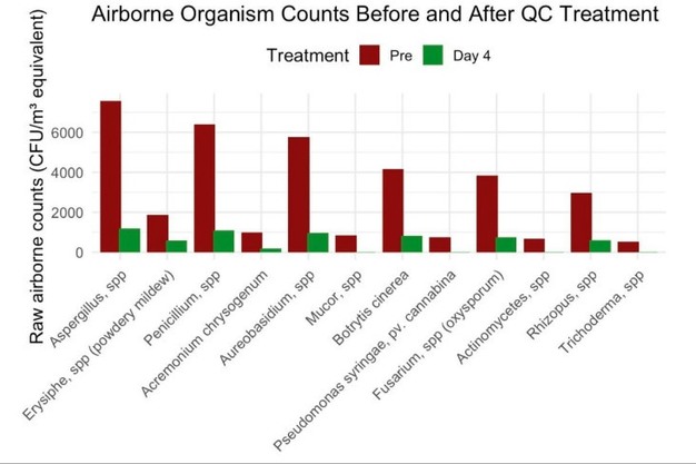 Bij cannabistelers richt de interesse zich vooral op via de lucht verspreide ziekteverwekkers die kunnen leiden tot nalevingsproblemen, zoals aspergillus. "Telers willen ook verliezen door echte meeldauw verminderen of de kosten en frequentie van IPM-interventies tijdens de bloei beperken. Omdat plasmabehandeling kan worden toegepast van weefselkweek tot en met post-harvestruimtes, hebben proeven onderzocht hoe de units functioneren tijdens de volledige teeltcyclus." Een teeltproef van november 2025 toonde aan dat vier dagen gebruik de Aspergillus-aantallen met 90% verlaagde.