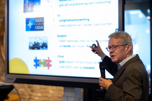 Voormalig ambassadeur Ron Keller schetste hoe geopolitieke spanningen ontstaan uit historische ontwikkelingen. "Een waarschuwing vooraf, het wordt helaas geen vrolijk verhaal. Maar ik sluit na regen af met een zonnetje, ofwel ook kansen voor uw sector."