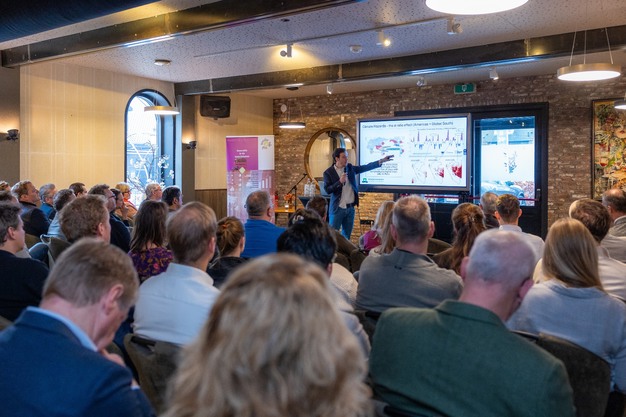 Walter Rossi Cervi (WUR) ging in op de impact van klimaatverandering. Extremere weersomstandigheden zorgen wereldwijd voor verstoringen in productie en logistiek. Hij benadrukte dat de sector gezamenlijk scenario's moet ontwikkelen om risico's beter in kaart te brengen en waar nodig leveranciers, contracten of technologie aan te passen.