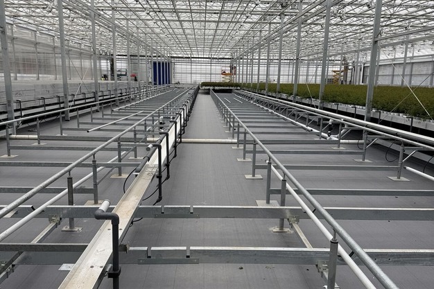 Ook de installatie van een hoogwaardig intern vloerdoek was een belangrijk onderdeel van het project. Doeksystemen winnen aan populariteit in de kassenbouw vanwege hun onderhoudsarme en onkruidwerende eigenschappen. "Een kwalitatief goed doek voorkomt onkruidgroei en houdt de vloer schoon," aldus George. Zijn team laste elk doekdeel in de kas zorgvuldig aan elkaar en werkte de randen nauwkeurig af. "We hebben het doek met aluminium strips aangesloten op de betonpaden en kopgevels, zodat er geen ruimte is waar onkruid doorheen kan komen."