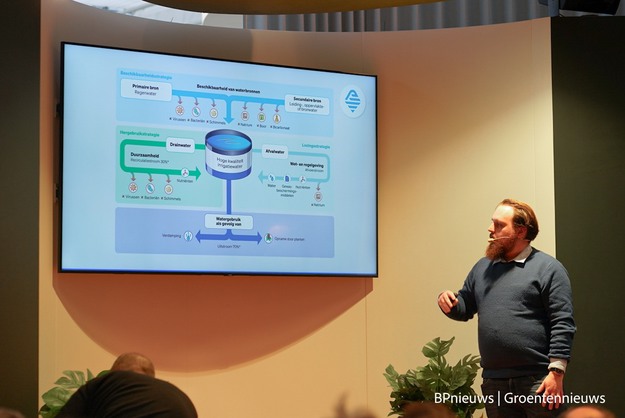 Daarna vertelt Jason Wiersma van Van der Ende Group over het streven naar efficiënt watergebruik en hoogwaardige irrigatiekwaliteit. Primair regenwater blijft volgens hem de beste bron, maar volledige hercirculatie blijft een uitdaging. Restwater is onvermijdelijk.