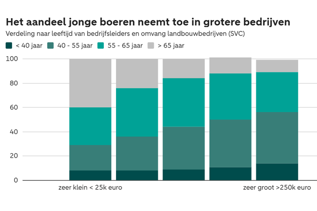 De onzekerheid over vergunningverlening en toekomstperspectief speelt eveneens mee. Heldere kaders en normeringen zijn volgens ABN AMRO nodig om jonge telers uitzicht te bieden. Ook flankerend beleid is volgens de bank noodzakelijk om te voorkomen dat schaalvergroting verder versnelt.