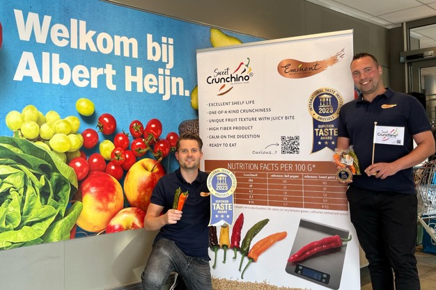 Tholen - Sinds half april ligt er een nieuw type paprika in de schappen bij 800 winkels van Albert Heijn in Nederland. Het gaat om Sweet Crunchino®, een nieuw paprikasoort die is ontwikkeld door Eminent Seeds. 'Extra zoet van smaak' staat er op de verpakking, waarop ook de merknaam prijkt. Dat laatste is extra bijzonder voor een markt waar merken maar weinig voorkomen.