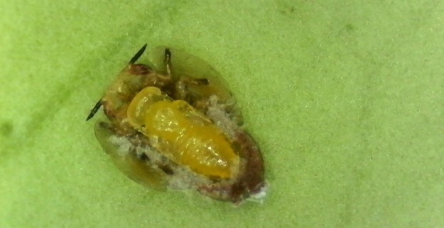 © CGC Tamarixia citricola, de nieuwe parasitoïde, ontdekt door het onderzoekscentrum Ivia in Cyprus, die zich voedt met de belangrijkste vector van HLB (Diaphorina citri). Het zou een sleutelrol kunnen spelen in de biologische bestrijding van deze ziekte.