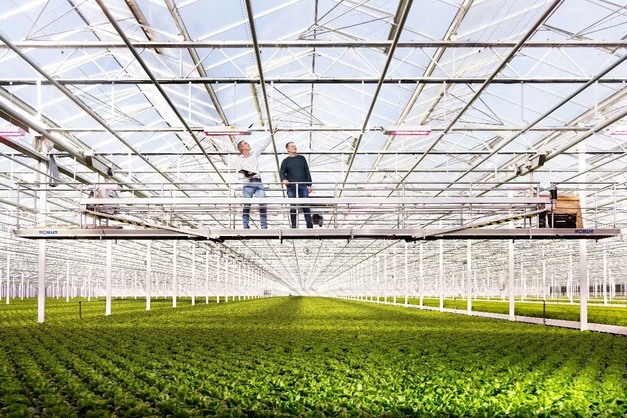 'We weten dat ondernemers hiermee goede resultaten halen,' vertelt Eric. Ze kiezen voor een kassenbouwer en installateurs in de regio, met ervaring in de teelt. Dat geeft vertrouwen. Het is hoe de ondernemers werken: putten uit de ervaring en leren van anderen. 'We willen de concurrentie voorblijven,' vertelt Tom. 'Daarom bouwden we in fases er nog 13 hectare bij. De oogsthal uit 2015 is groot genoeg om nog meer kroppen sla te verwerken.'