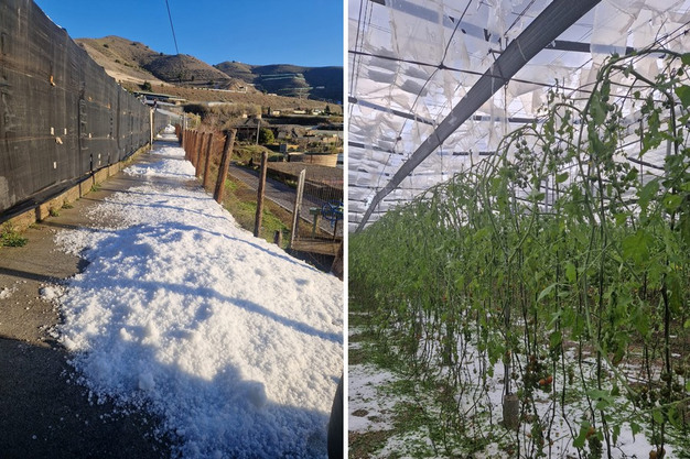 Vooral de Costa Tropical in de provincie Granada kreeg het zwaar te verduren. In de nacht van zondag 28 december trok een flinke hagelbui over de regio, met name rond Carchuna, Motril en Castell de Ferro. "Op sommige plekken viel er zo veel hagel dat de kassen het gewicht niet aankonden", vertelt Miguel Monferrer van telersorganisatie Coag Granada. "Er zijn structuren gedeeltelijk en soms volledig ingestort."
