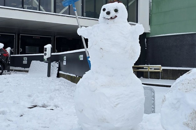 10 cm sneeuw, dus maakte Dennis Grootscholte van 4Evergreen toch even gebruik van de pauze om een sneeuwpop te maken.