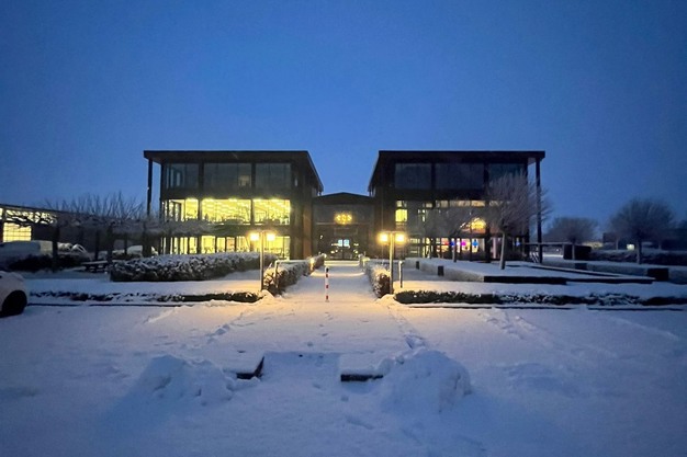 © Fresh PublishersHet kantoor van GroentenNieuws in Tholen. Maandagochtend vroeg nog zonder veel sneeuw, maar dinsdag inmiddels, ondanks sneeuwruimen, weer aardig ingesneeuwd.